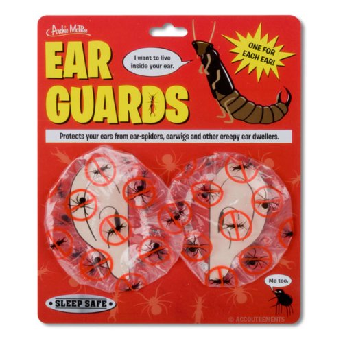Keep your ears safe from ear-spiders and earwigs with these protective Ear Guards Just slip them over your ears before you go to bed at night and youll wake up revitalized refreshed and ear-bug free After all ears are meant for hearing not housing Two vinyl guards with snug-fit elastic on each Read More..